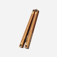 Der Moab x Meridian Balisong Trainer ist für die täglichen Anforderungen beim Flippern konzipiert und kombiniert Griffe und Spacer aus 7075er Aluminium mit einer gehärteten Trainer-Klinge für außergewöhnliche Robustheit. Ein verlängerter Erl schützt den Drehpunktbereich vor Stürzen und sorgt so für dauerhafte Leistung und Zuverlässigkeit.