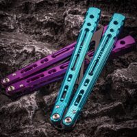 Der LDY Sirius 4.5 Balisong Trainer hebt sich als überzeugendes Angebot im Mid-Range-Trainer-Markt hervor. Seine Kombination aus Premium-Materialien (7075 Aluminium, Bushing-System), durchdachten Designverbesserungen (geringeres Gewicht, verbesserte Griff-Fräsung) und einem starken Leistungsruf innerhalb der Balisong-Community machen ihn zu einer fantastischen Option und einem ausgezeichneten Preis-Leistungs-Verhältnis. Die potenziell längere Klinge/Griff des Sirius bietet eine andere Flipping-Dynamik im Vergleich zum „Standard“-Gefühl wie beispielsweise beim Kraken von Squid Industries, daher ist der Sirius perfekt für dich, wenn du nicht nur ein super ästhetisches Balisong suchst, sondern auch eines, mit einem bisher unvergleichbaren Flipping-Gefühl.