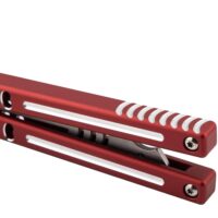 Besonders am Mako V5 ist die hervorragende Balance zwischen Performance, Haltbarkeit und Nutzen im Alltag, als super praktischer Bottle-Opener. Der Balisong Trainer besitzt Handles im Channel-Design, die aus hochwertigem 6061 T6511 Aircraft-Aluminium bestehen. Die Trainingsklinge besteht aus gehärtetem 410er Edelstahl. Besonders ist auch die Hardware an der Unterseite der Griffe, da diese als abnehmbares Gewicht dient, um die Gewichtsbalance feiner auf sich selbst abstimmen zu können. Interessant ist auch die Rückenflosse auf der Rückseite der Klinge des Makos, denn diese dient nicht nur als bloßes Designelement, sondern auch als taktiles Feedback, wenn du die Griffe beim Flippen zu niedrig hältst.