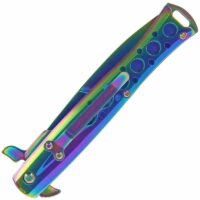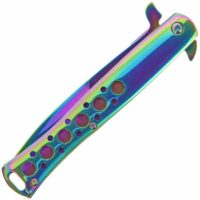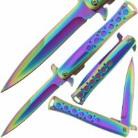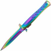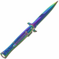 Hinweis: Es handelt sich bei diesem Messer nicht um ein echtes Stiletto-Messer. Geöffnet wird das Messer per Flipper, nicht per Knopfdruck, der die Klinge herausschnellen lässt. Lediglich die Optik ist einem Stiletto Messer nachempfunden.