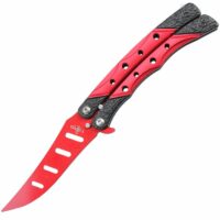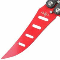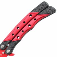 Bei dem Modell K2807RD von Third handelt es sich um einen einzigartigen Butterfly Trainer, denn dieses Design sieht man nur super selten, gerade deswegen ist der Trainer ein toller Fang für alle Messerliebhaber und Sammler. Das markante rote Design in Kombination mit der leicht geschwungenen und spitz zulaufenden Klinge verleiht dem Trainer ein auffälliges und herausstechendes Auftreten. Gefertigt ist das Modell aus 420er Stahl und kommt auf ein Gesamtgewicht von 147 g.