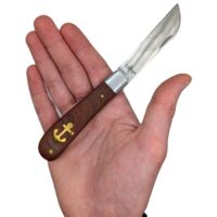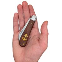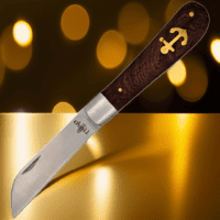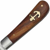 Dieses stilvolle Taschenmesser, auch bekannt als Bootsmesser, Ankermesser oder Seglermesser, ist ein Muss für jeden Liebhaber traditioneller Messer und maritimer Ästhetik. Mit seinem klassischen Design und der hochwertigen Verarbeitung verkörpert es die zeitlose Eleganz eines echten Seeklassikers und das für einen absolut fairen Preis. Gerade in der heutigen Zeit erleben die eigentlich für den maritimen Bereich gemachten Taschenmesser einen regelrechten Boom – denn so ein Modell darf in keiner Sammlung fehlen. Dank seiner kompakten Größe von 16,5 cm im ausgeklappten Zustand und 9,1 cm im eingeklappten Zustand und einem Federgewicht von nur 68 g, eignet es sich bestens als Alltagsmesser für die verschiedensten Aufgabenbereiche. Die 7,2 cm lange Sheepfoot-Klinge besteht aus 420 Stahl und bietet mit einer Klingenstärke von nur 2,4 mm ordentlich Schärfe. Für einen absolut schönen Blickfang sorgen die hölzernen Griffschalen in Kombination mit dem Anker-Motiv.